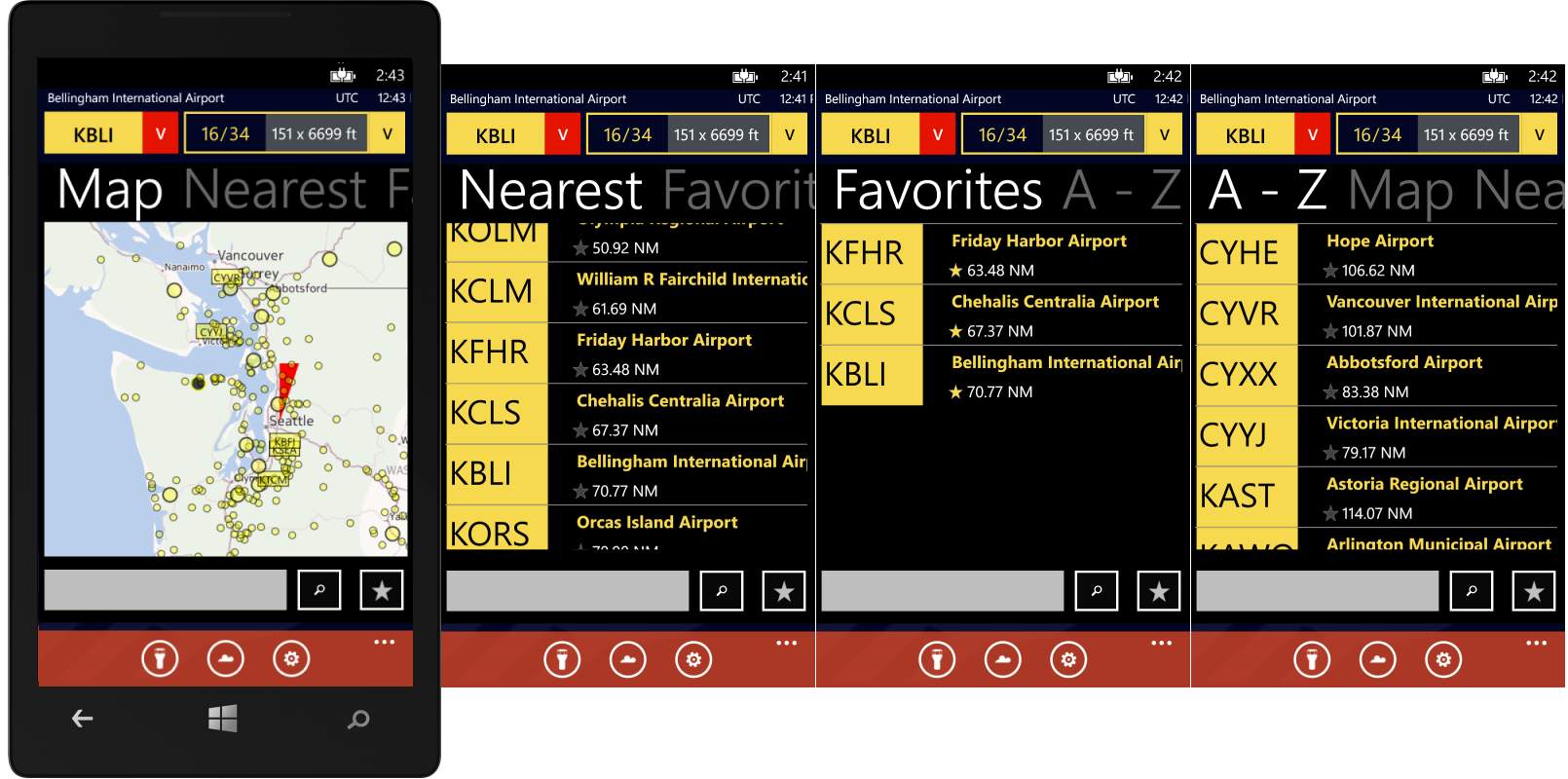 The airport picker contains four pages or views as depicted below. The pages with airports list can show only cached airports. On the other hand, the map page can show you all the 45 000+ airports the app is aware of.